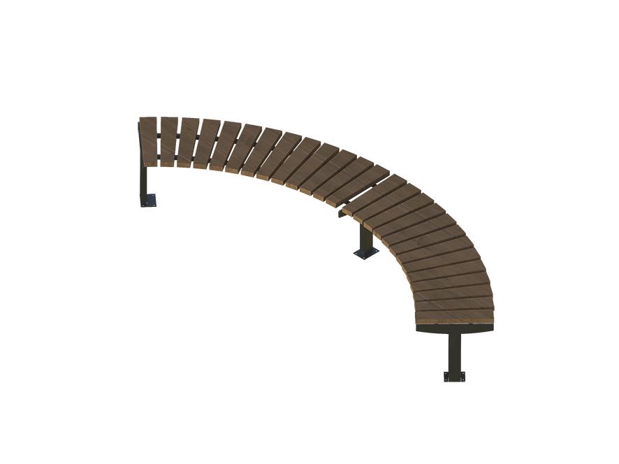 Сиденье может быть изготовлено из бруса хвойных пород древесины, термообработанной древесины или древесно-полимерного композита (ДПК). Форма – изогнутая, радиальная.